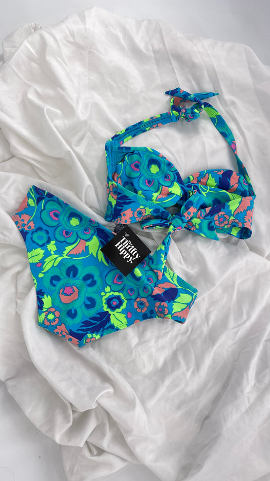 AERIE Blue Paisley Swim Set with Tags Attached (M Top S Bottoms)