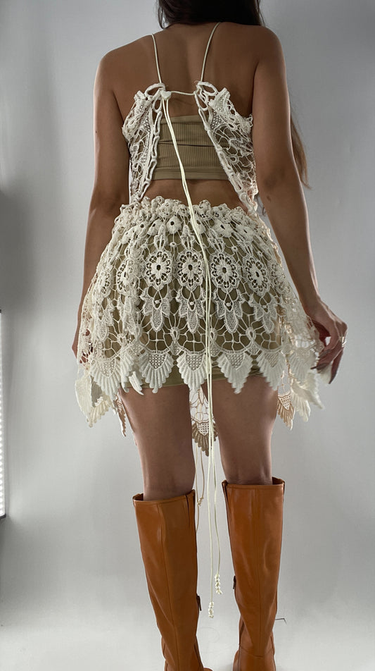 Vintage Handmade Heavy Duty Lace Two Piece Set with Butterfly/Moth Wing Top and Mini Skirt (One Size Fits Most)