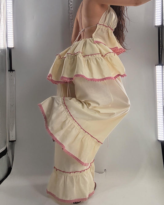 Vintage Handmade Heavily Embroidered Play Set with Sailor Style Ruffled Bum (XS-XL)
