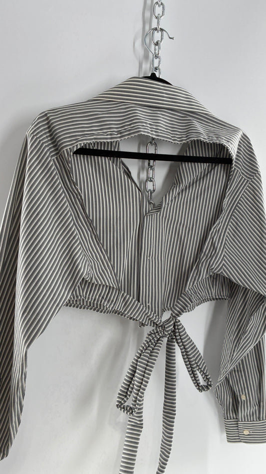 Vintage DAVID TAYLOR Reworked Button Front Backless Grey Striped Blouse (One Size)