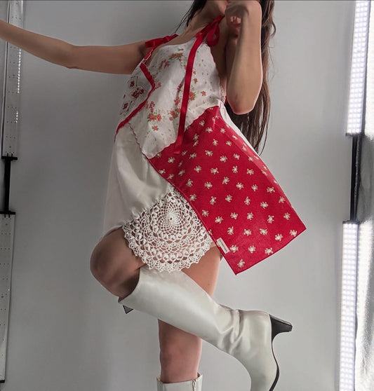 Vintage Red Handmade Handkerchief Backless Mini Dress (XS-L)