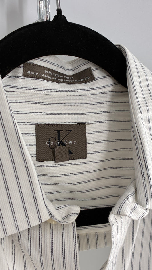 Vintage CALVIN KLEIN Reworked Button Front Backless White Striped Blouse (One Size)