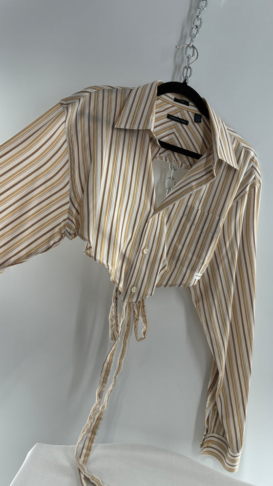 Vintage VAN HEUSEN Reworked Button Front Backless Mustard Yellow, Brown Striped Blouse (One Size)