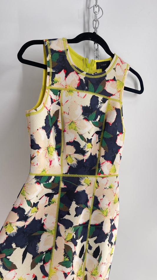 Vintage Handmade Pink Sketchbook 90s Print Mini Dress with Green Ribbon and Built In Boning (XS)