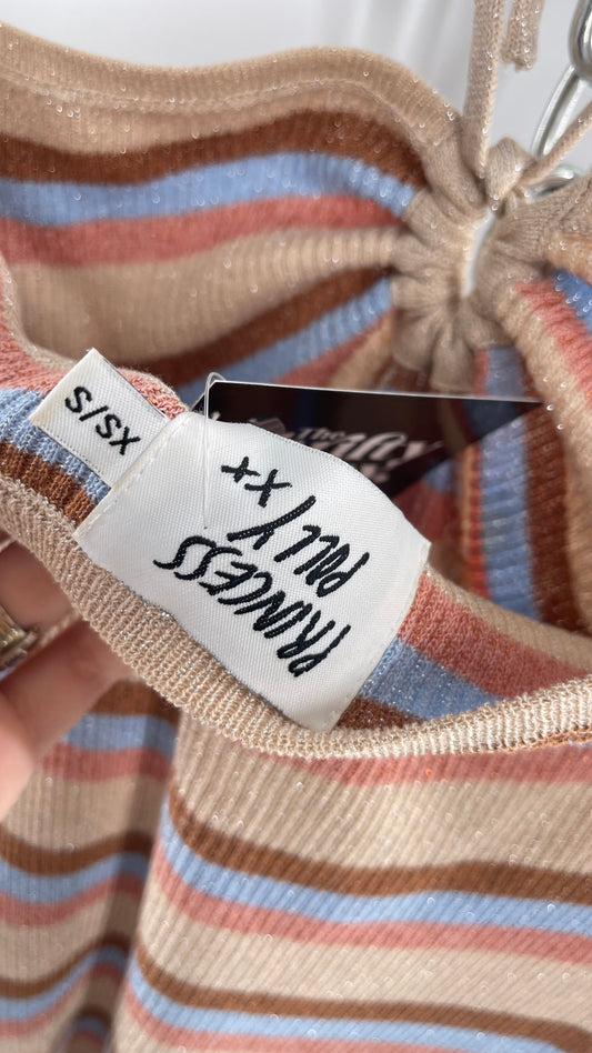 Princess Polly Beige/Blue/Pink Striped Glitter/Tinsel Knit Mini Dress (XS/S)