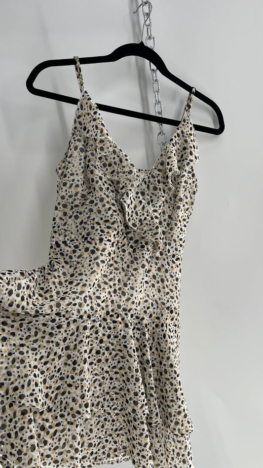 Cheetah Printed Dress with Asymmetric Ruffled Hem(XL)