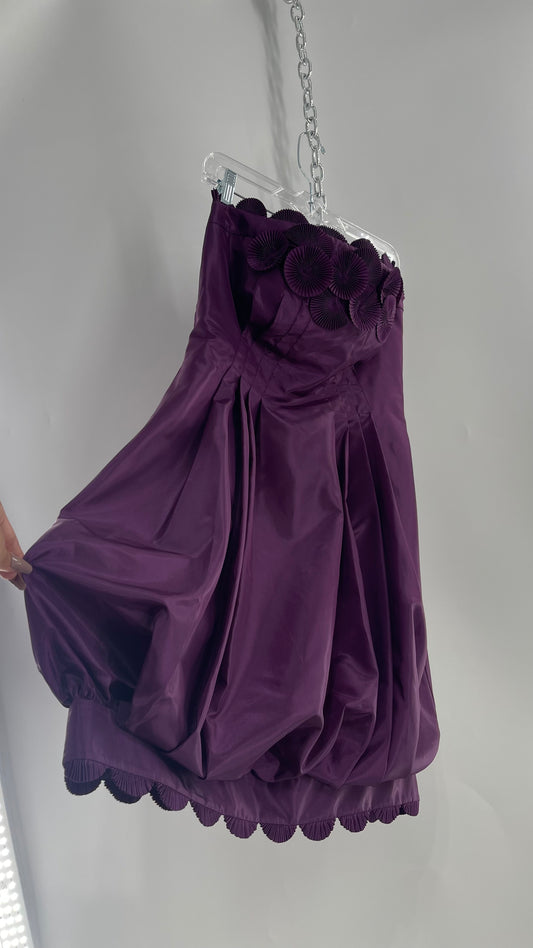 Vintage Liz Elana Purple Bubble Hem Mini Dress with Boned Corseted Bodice and Pleated Accordion Scalloping (8)