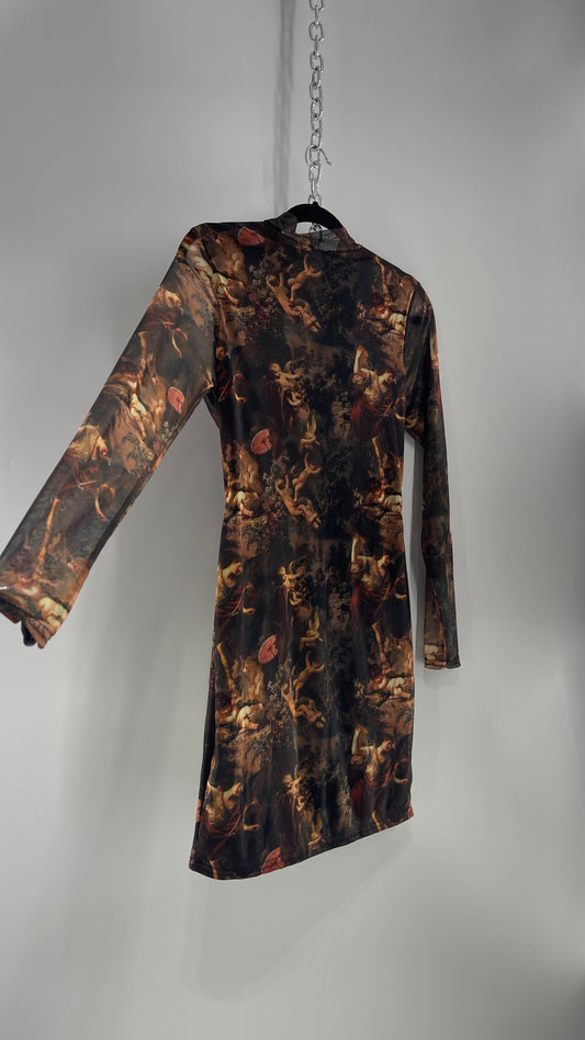 Pretty Little Thing Renaissance Angel Oil Painting Mesh Dress with Tags Attached (10)