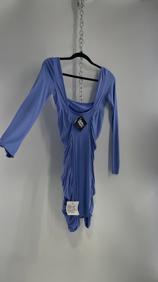 ASOS Periwinkle Blue Ruched Side, Long Sleeve, Body-con Mini Dress (4)