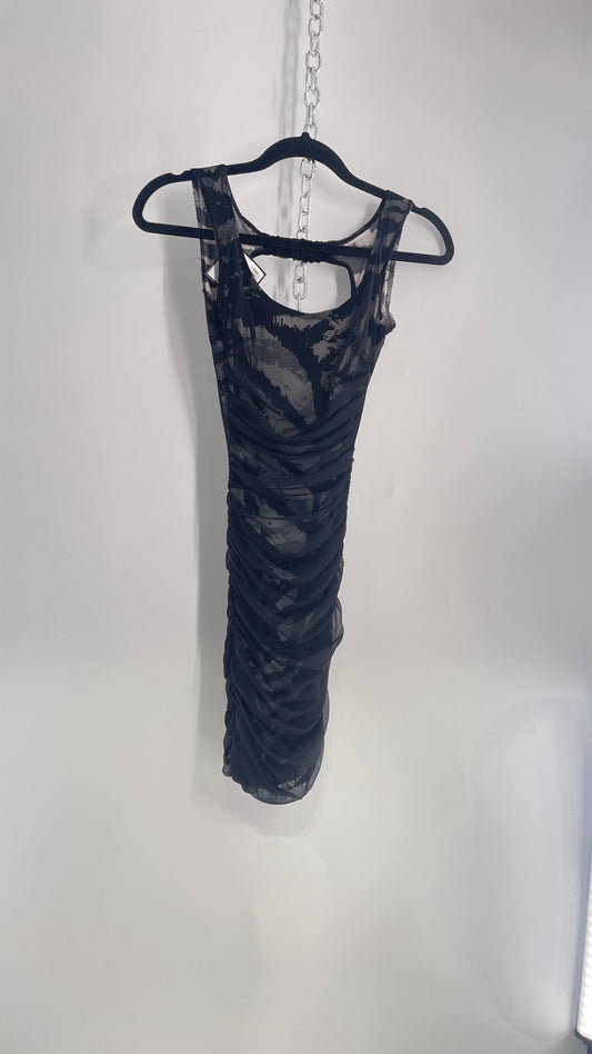 Vintage Rocker Punk Black Mesh Mini Dress with Abstract Black/White Underlay (XS)