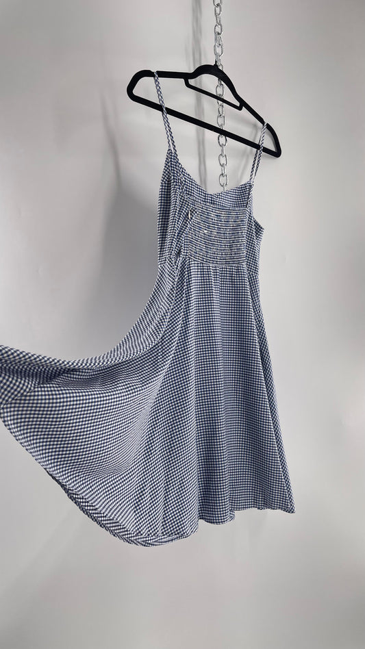 Vintage Style Gingham Blue and White 1950s Circle Skirt Picnic Dress (Medium)