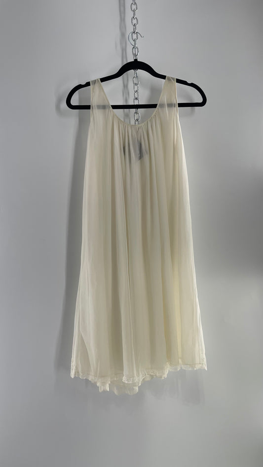 Vintage Leonora Off White Camisole Slip Nightgown Dress with Lace Trim and Decal Detail (Small)