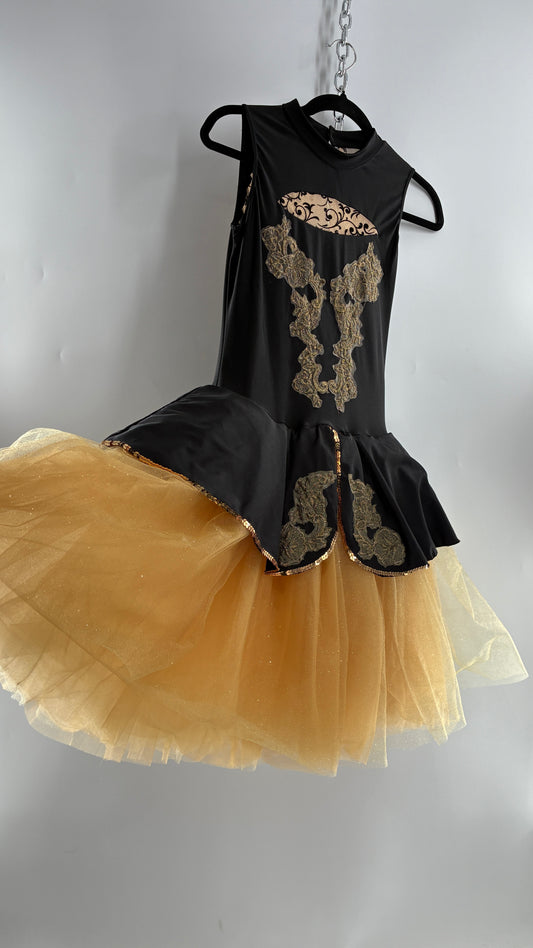 Costume Dancewear Mini Dress with Full Tulle Skirt, and Lace Appliqués (Medium Adult)