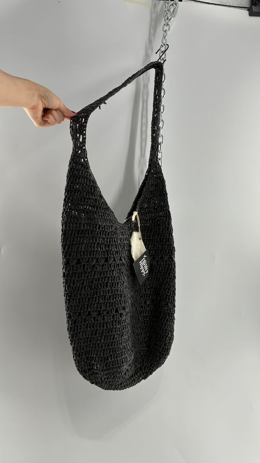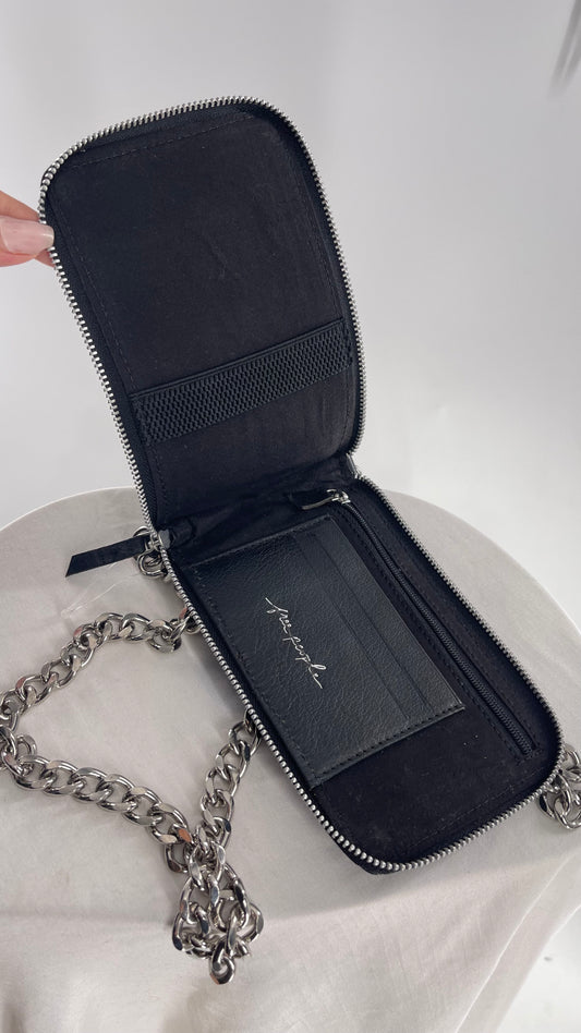 Free People Black Leather Phone Case/Purse with Heavy Chain