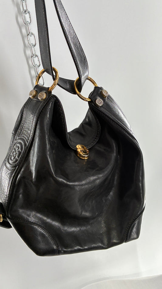 Vintage MARINO ORLANDI Black Leather Purse Made in Italy with Gold Embossed Hardware
