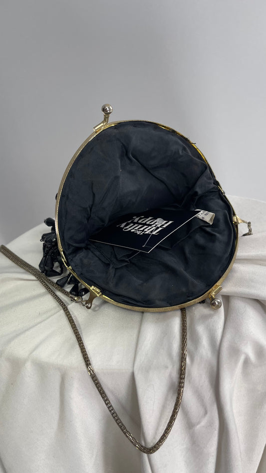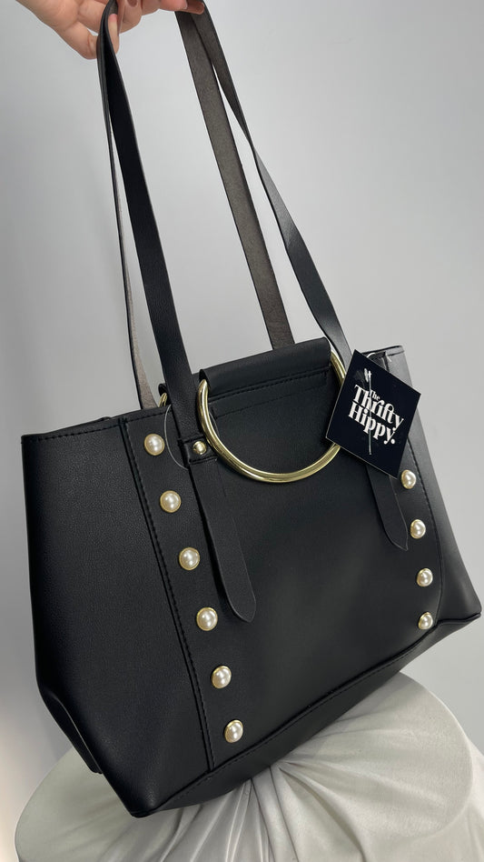 Free People Black Vegan Leather Bag with Pearl and Gold Hardware Details