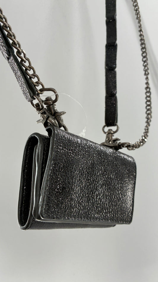 Free People Black Metallic Goat Leather Wallet with Leather and Chain Straps