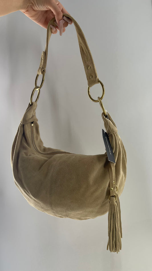 Vintage Banana Republic Genuine Suede Saddle Bag with Tassel Zipper Pull and Tags Attached