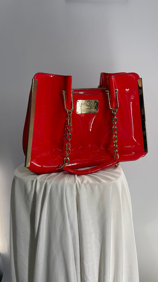 BEBE Vintage Plastic Red Orange Bag with Gold Hardware