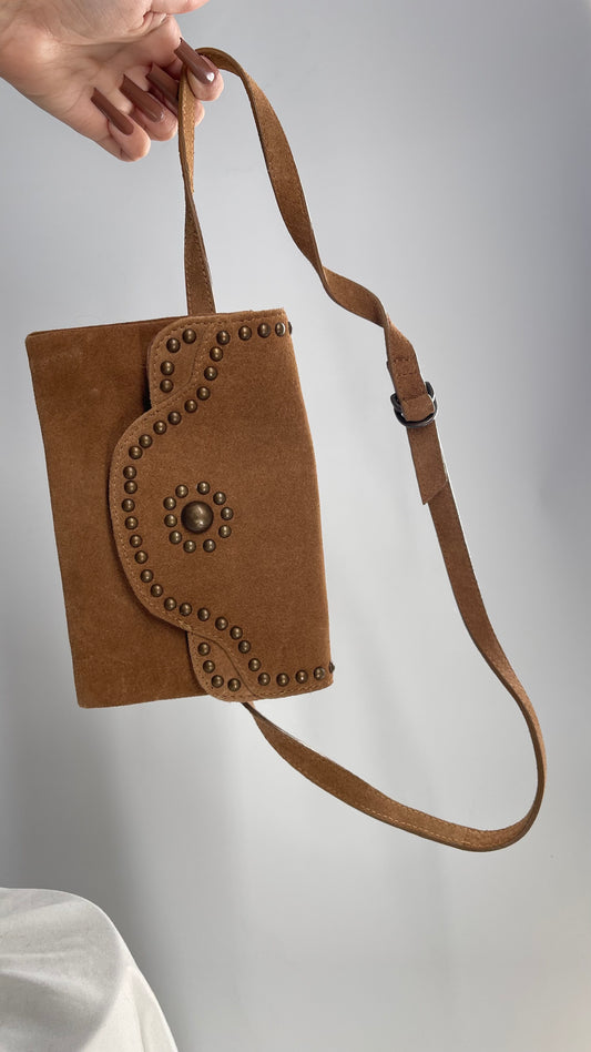 Free People Brown Suede Leather Studded Crossbody Fanny Pack Waist Bag