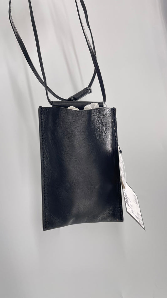 Free People Black Leather Crossbody Phone Pouch with Card Slots and Tags Attached
