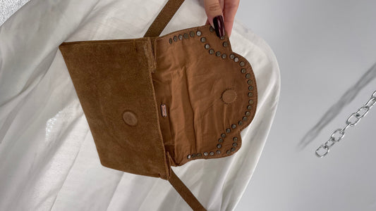 Free People Brown Leather Studded Fanny Pack / Waist Belt and Satchel