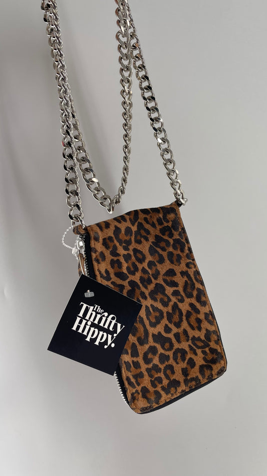 Free People Cheetah Suede Leather Phone/Card Pouch with Heavy Metal Chain