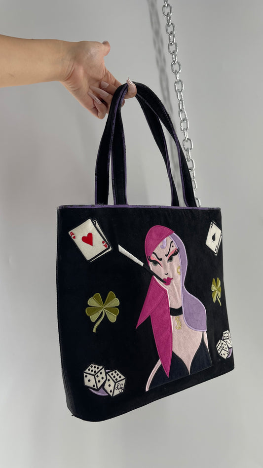 RARE Vintage LULU GUINESS Black Las Vegas Poker/Casino Bag with Embroidered Designs