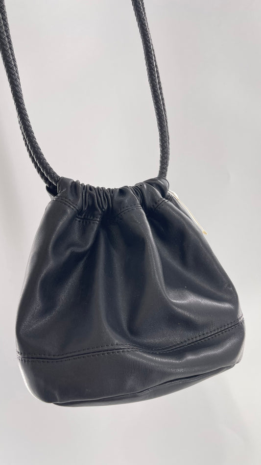 Urban Outfitters Black Adjustable Bucket Tank Vegan Leather Bag with Braided Handles