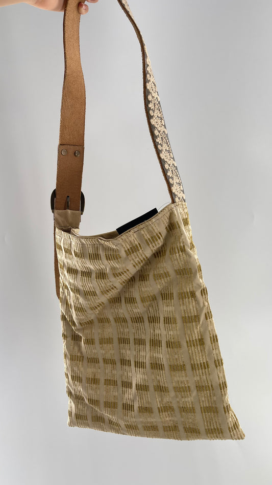 Tote with Embroidered Gold Exterior, Embroidered Leather Strap and Leather Interior - Shown Reversed