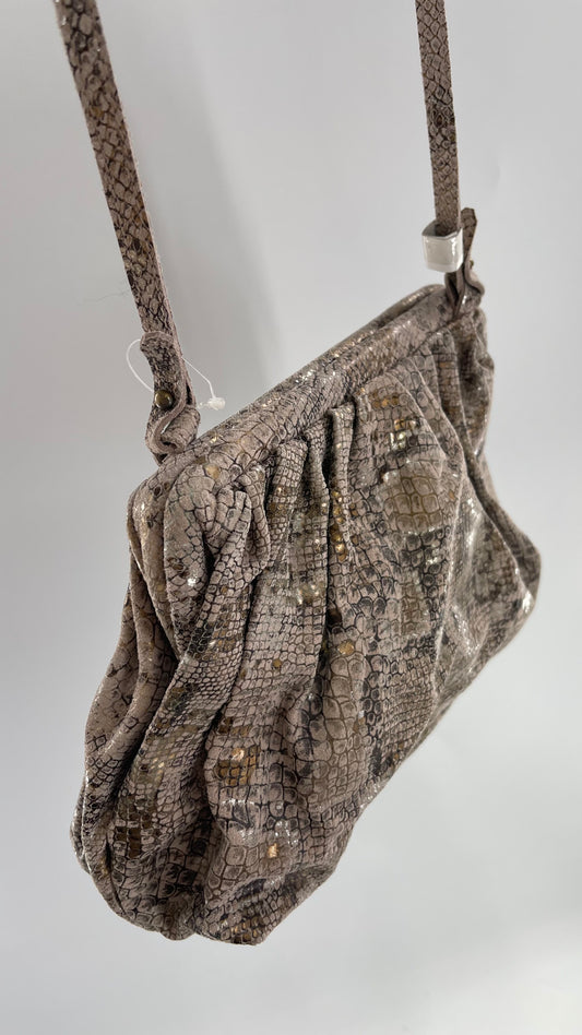 Free People Genuine Leather Clutch and Shoulder Bag Snake Print with Reflective Silver and Gold Flecks