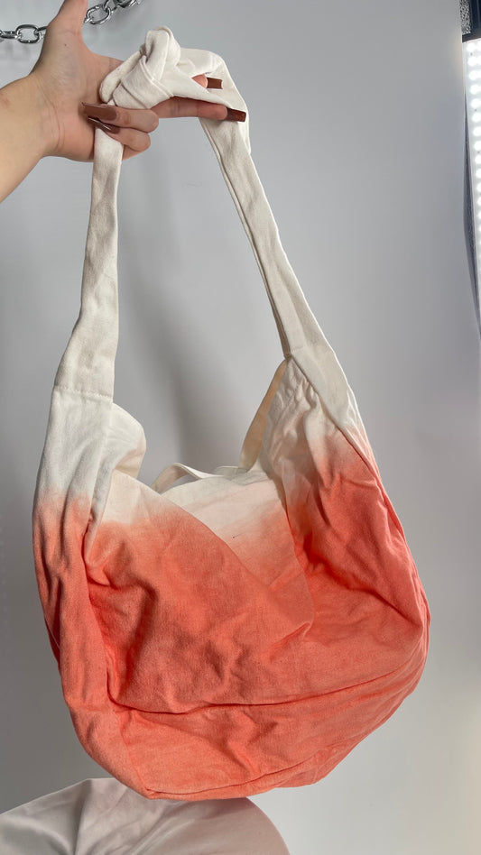 Free People Ombré Salmon Canvas Tote Bag with Dual Straps