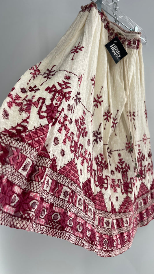 Vintage 1970s Peacock Off White Embroidered Skirt with Pink/Fuchsia Detailing (Small)Preço normal $46.00Preço normalPreço unitário por$129.00Preço promocional $46.00Promoção