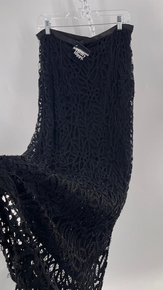 Vintage Black Beaded Lace Scalloped Edge and Satin Waistband Maxi Skirt (Large)Preço normal $48.00Preço normalPreço unitário por$70.00Preço promocional $48.00Esgotado