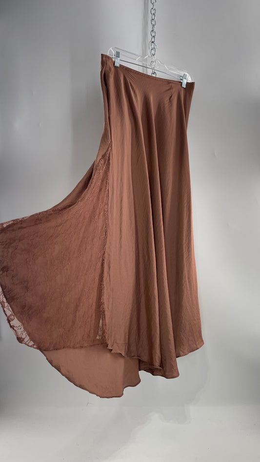 Intimately Free People Brown/Dusty Mauve Satin Maxi Skirt with Lace Paneling (Medium)Preço normal $62.00Preço normalPreço unitário por$128.00Preço promocional $62.00Esgotado