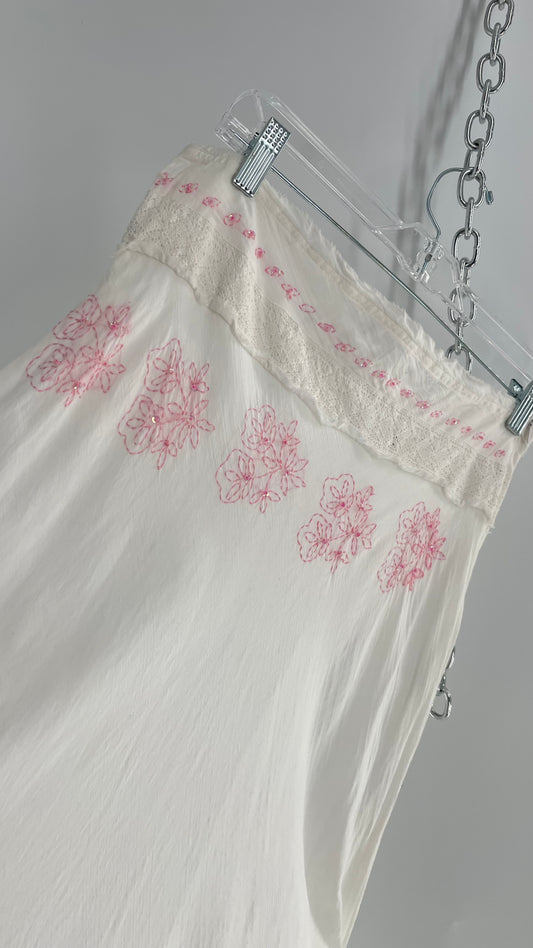 Vintage La Belle White Tiered Maxi Skirt with Pink Embroidery (9)Preço normal $38.00Preço normalPreço unitário por$69.00Preço promocional $38.00Promoção