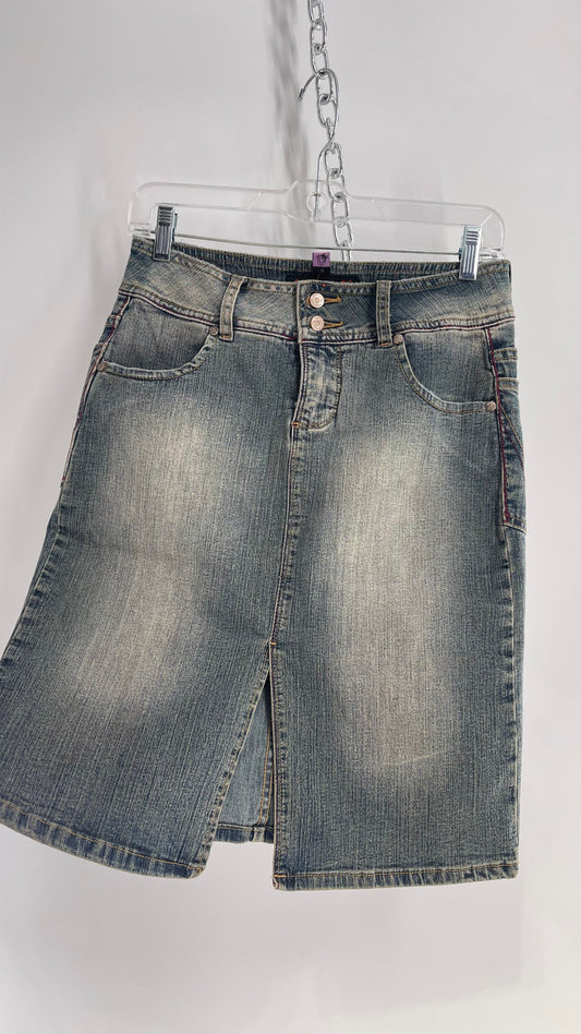 Vintage Hint Jeans Denim Skirt with Frayed Seams (1)Preço normal $28.00Preço normalPreço unitário por$38.00Preço promocional $28.00Promoção