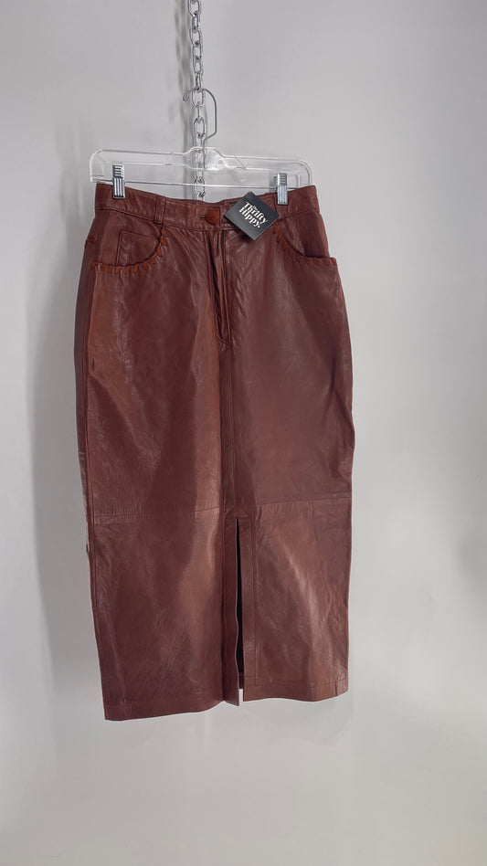 Vintage Diario Italian Brown Leather Long Skirt with Suede Stitch Detail (36)Preço normal $142.00Preço normalPreço unitário por$598.00Preço promocional $142.00Promoção