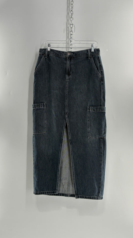 Old Navy Mid Rise Vented Denim Cargo Skirt (4)Preço normal $26.00Preço normalPreço unitário por$39.00Preço promocional $26.00Promoção