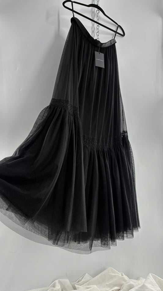 Needle & Thread Voluminous Black Multi Layer Mesh Full Length Skirt with Ribbon Waistline with Tags Attached (10)Preço normal $88.00Preço normalPreço unitário por$450.00Preço promocional $88.00Promoção