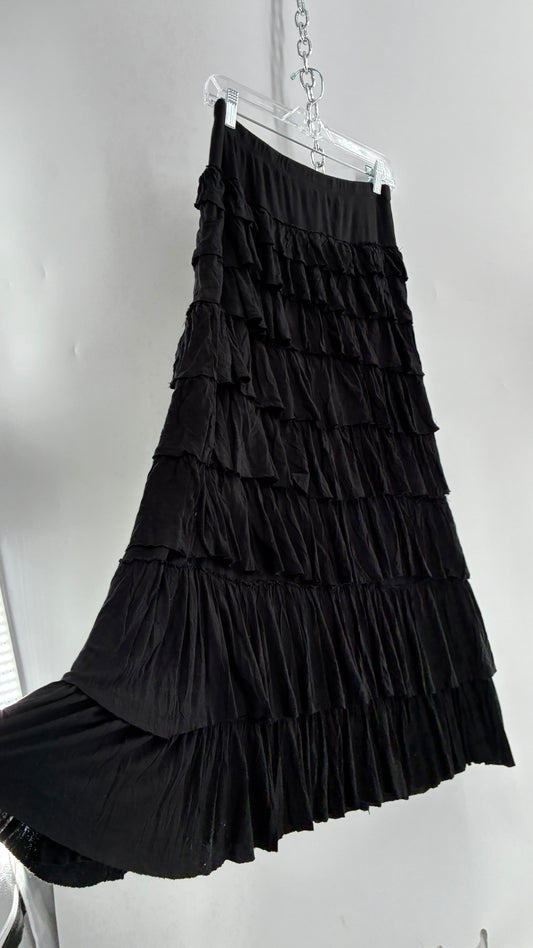 Vintage Black Ruffled 100% Viscose Ruffled Maxi Skirt (PSmall)Preço normal $32.00Preço normalPreço unitário por$52.00Preço promocional $32.00Promoção