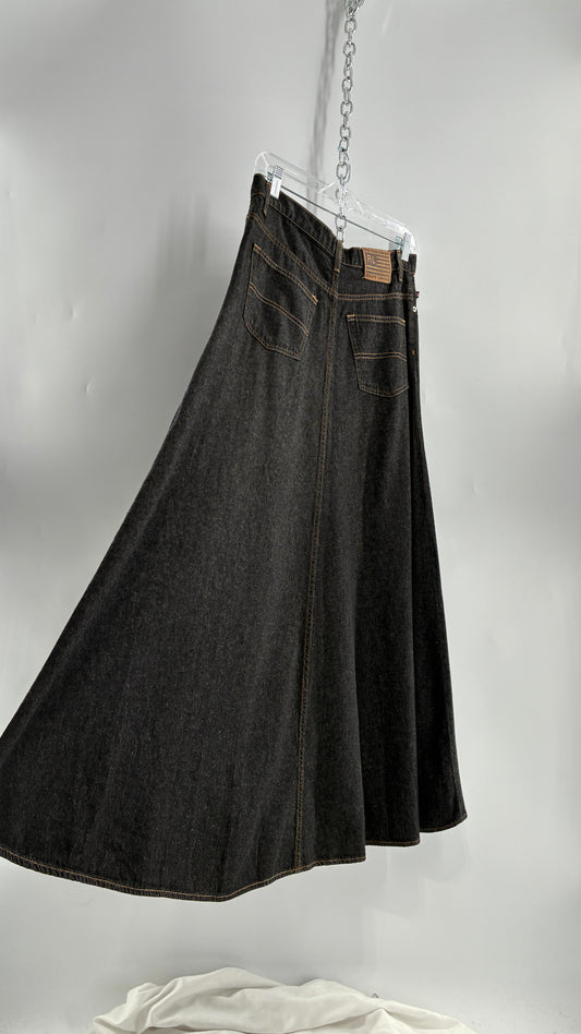Vintage Urban Outfitters Renewal Union Bay Dark Wash Denim Full Length Skirt with Tags Attached (Small)Preço normal $42.00Preço normalPreço unitário por$89.00Preço promocional $42.00Promoção