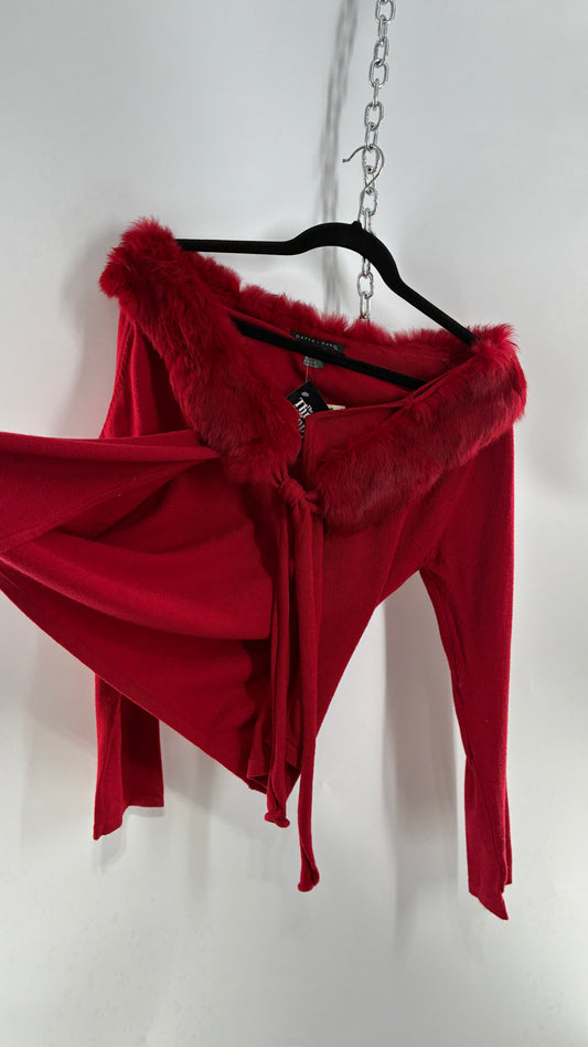 Deadstock Vintage BETTE SUNG Red Tie Bust Cardigan with Genuine Rabbit Fur Collar (Large)Preço normal $49.00Preço normalPreço unitário por$80.00Preço promocional $49.00Promoção