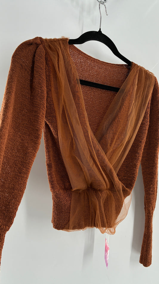 CHICWISH Brown Heavy Knit Balloon Sleeve, Tulle Ruched Details, and Tags Attached (Small)Preço normal $26.00Preço normalPreço unitário por$39.99Preço promocional $26.00Promoção