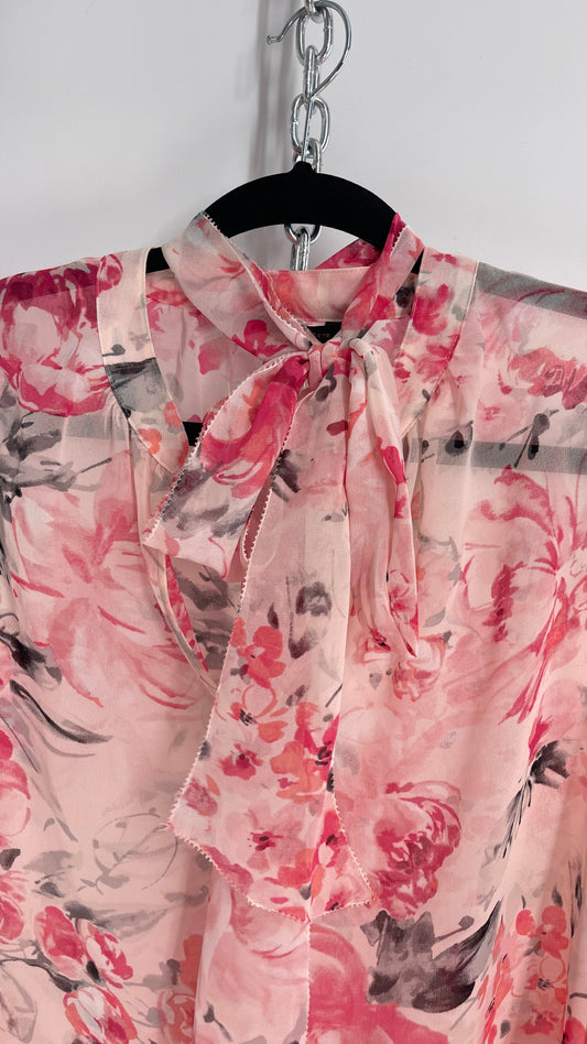 White House| Black Market Pink Floral Tie Neck Bubble Sleeve Blouse (10)Preço normal $28.00Preço normalPreço unitário por$69.00Preço promocional $28.00Promoção