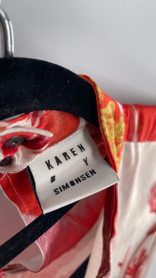 KAREN BY SIMONSEN Silky Champagne and Red Floral Patterned Balloon Sleeve Blouse (34)Preço normal $59.00Preço normalPreço unitário por$120.00Preço promocional $59.00Promoção