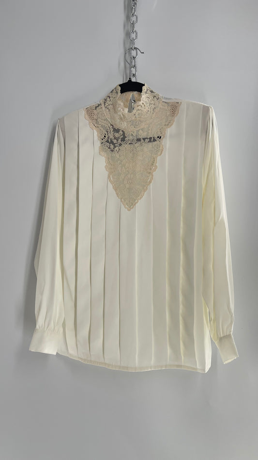 Vintage Off White Pleated Front Lace Neckline Blouse (10)Preço normal $38.00Preço normalPreço unitário por$79.00Preço promocional $38.00Promoção