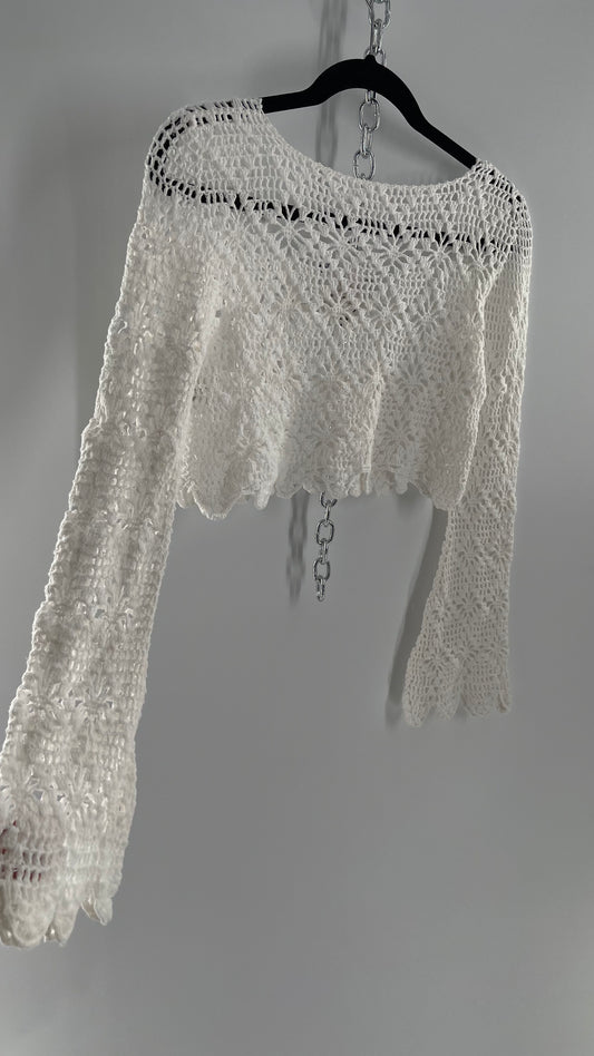 Vintage Tula Rosa Amaka White Crochet Cropped Long Sleeve (Small)