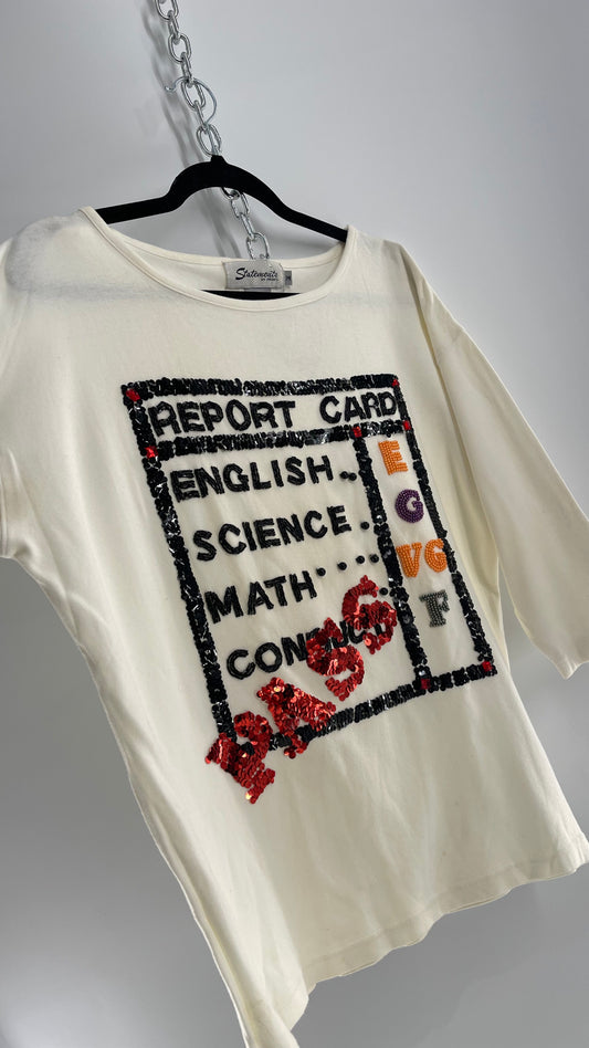 Vintage Statements by Pronto Embellished Sequin+ Beaded Report Card Long Sleeve with Barely Passing for Conduct (Medium)