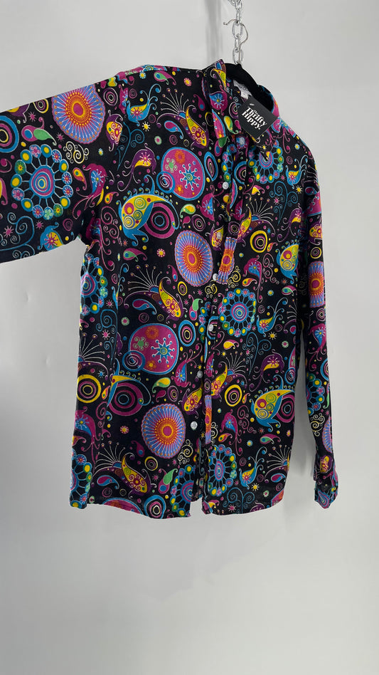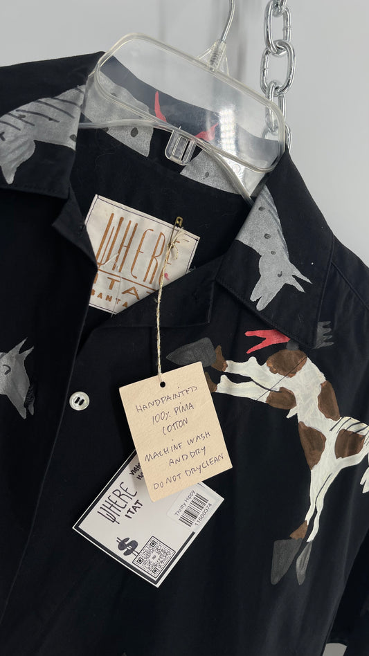 WHERE ITAT Black Button Up with Hand Painted Horses 100% Pima Cotton with Tags Attached (Small)